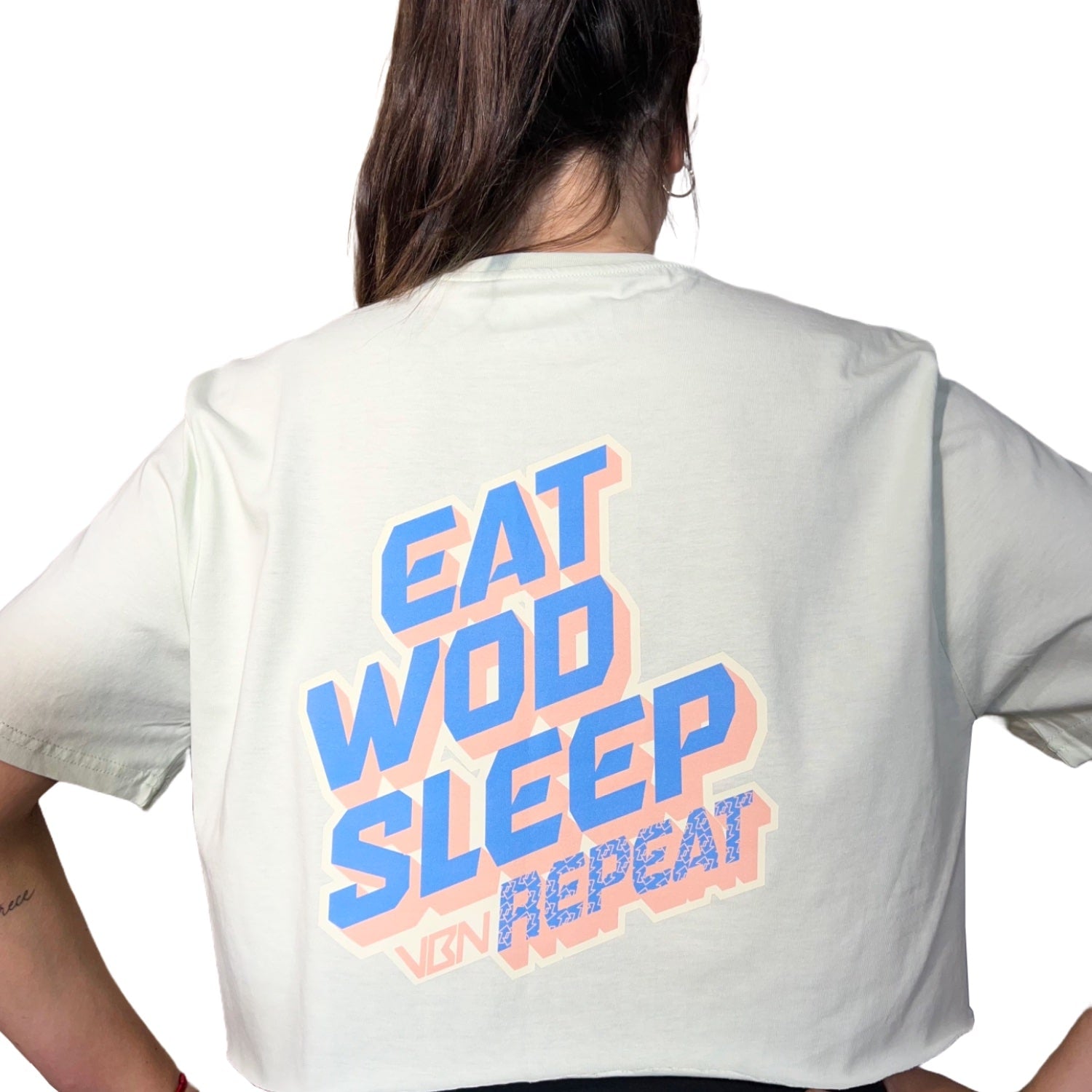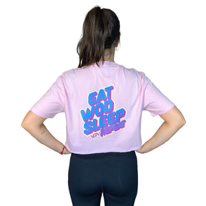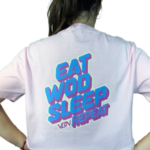 Camiseta de entrenamiento para mujer de alta calidad con diseño Eat Wod Sleep. Ideal también para el día a día gracias a su composición y tejido de alta calidad. Muy cómoda y adaptable.