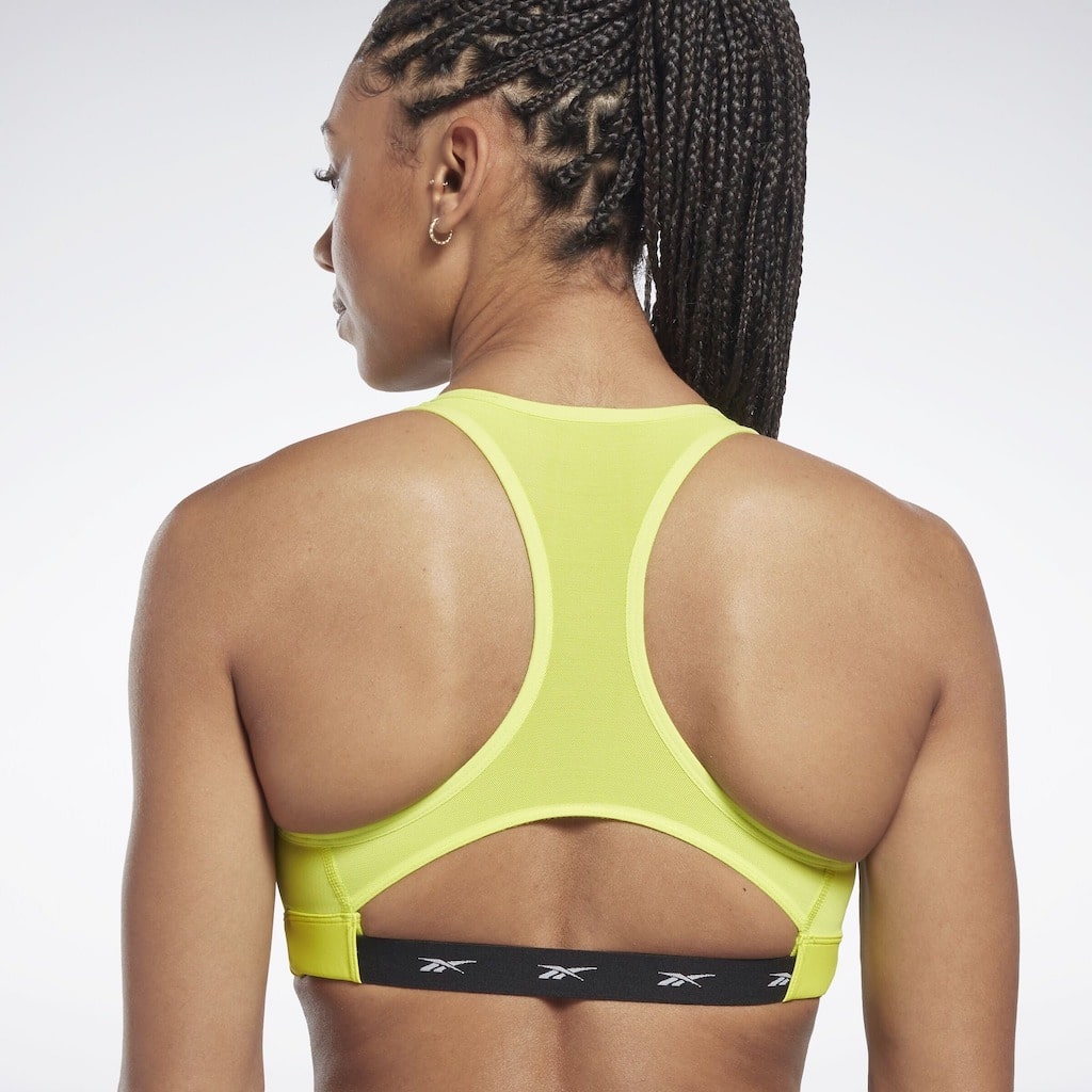 Sujetador deportivo de medio impacto que forma parte de la colección [REE]Cycled de Reebok. Diseño elegante con espalda de nadador, ideal para entrenamiento diario. Está confeccionado con tejido transpirable y tecnología Speedwick para mantenerte seca y cómoda a cualquier ritmo. Ofrece una sujeción media perfecta para clases de baile, sesiones de gimnasio o entrenamientos de spinning. Las almohadillas extraíbles permiten modificar su cobertura.